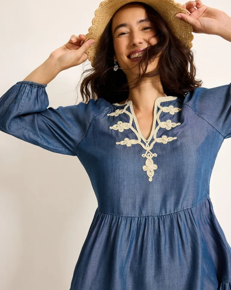Chambray Embroidered Coverup Dress