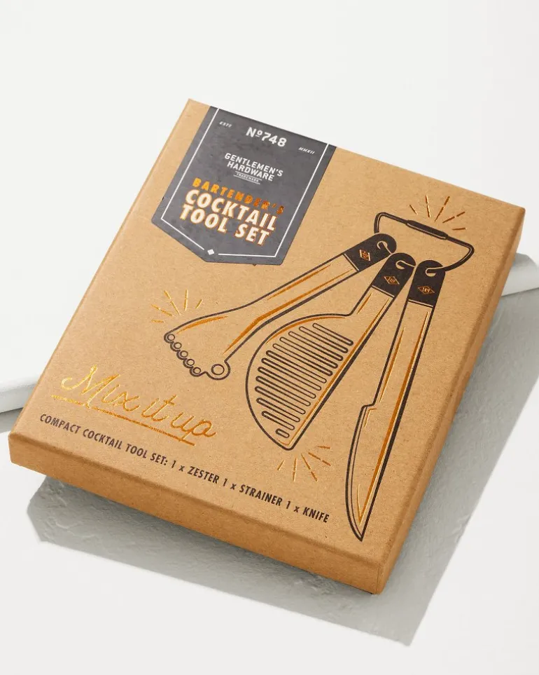 Upgrade your barware collection with our compact bar tool set that carries a zester, strainer, and knife all on one handy carabiner! It also makes a great gift for any experimenting mixologist in your life with its elevated packaging.