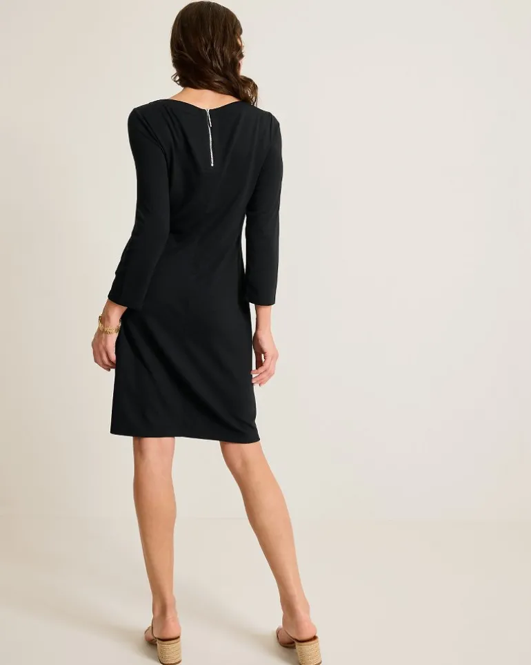 Go on, flatter yourself! Meet the Darcy, our beautiful ponte fabric dress that gives you the best in coverage with chic style—back with new, fall-ready 3/4 sleeves. Pick your favorite color and pair it with a statement necklace for a stand-out night on the town.
