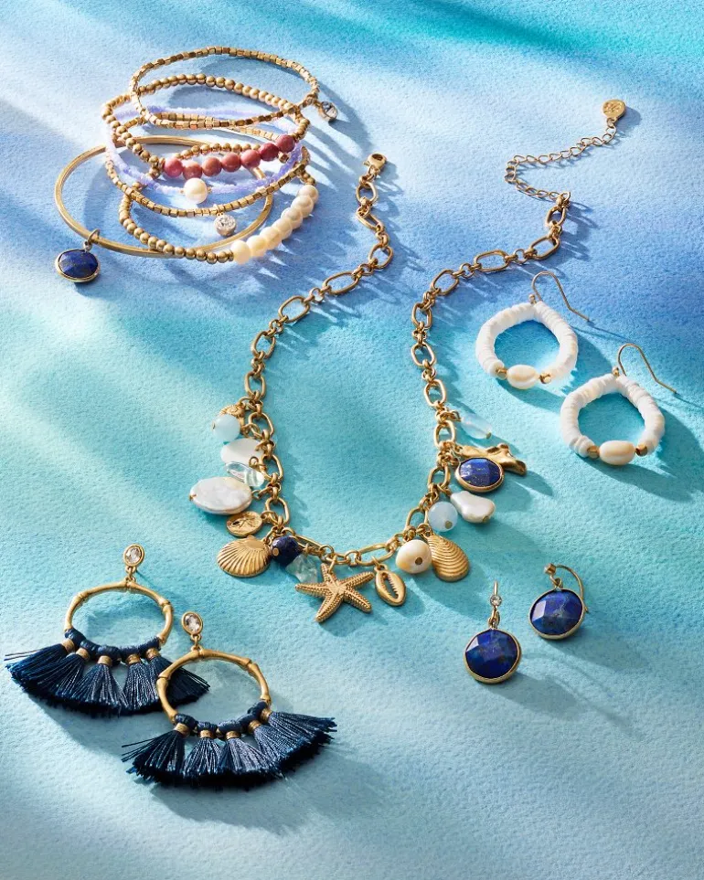 Make your best entrance with on-trend statement earrings featuring bold, sapphire-hued tassels and eye-catching golden metals.