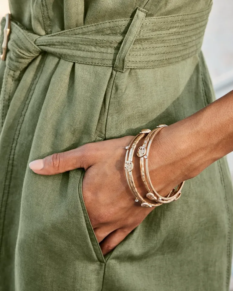 Stacked or solo, this embellished set of bangles instantly adds charm to your look with dainty sea-inspired details.
