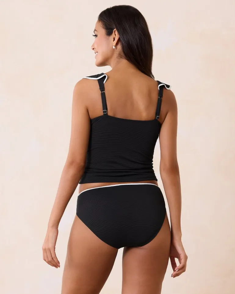 A sweet ruffle neckline elevates this tried-and-true tankini style. With our soft-to-the-touch, UPF-rated Island Cays piqué fabric, this fun, chic swimsuit is ready for a day of lounging by the water.