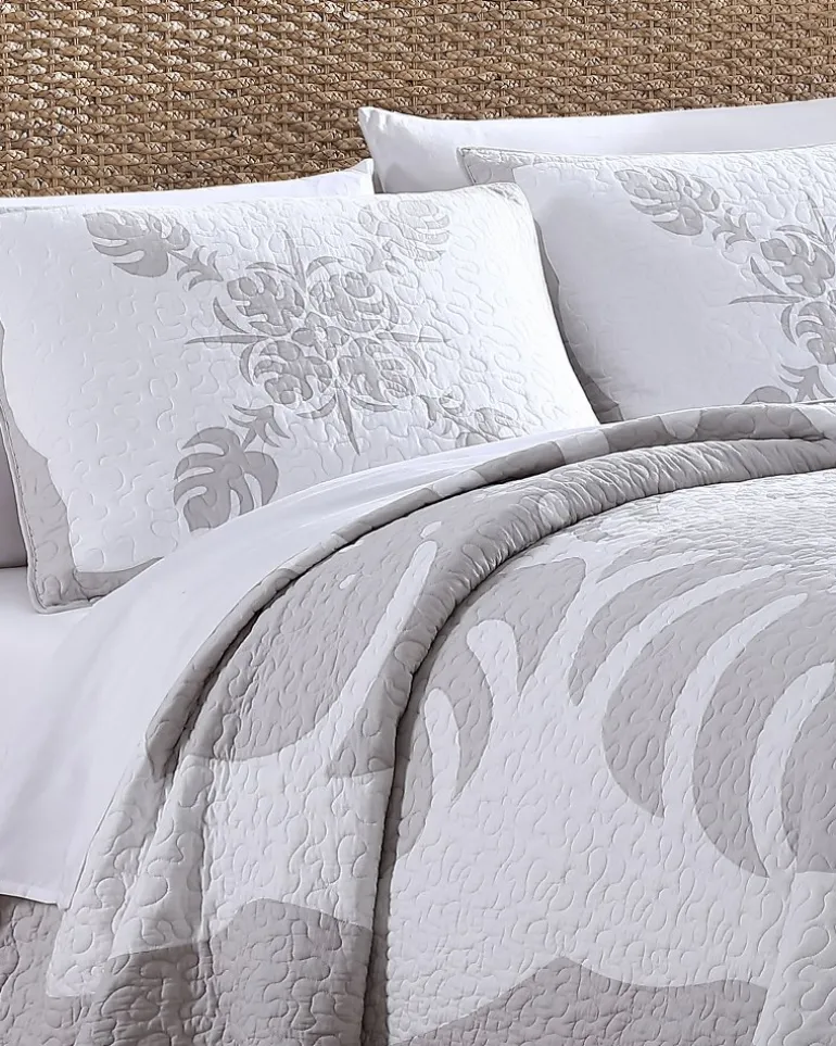 Our Molokai Quilt was inspired by the tropical island in Hawaii, featuring soft, grey embroidered motifs on a quilted white ground with a light grey reverse. Lightweight and easy to layer, this fully reversible quilt is just what you need to dive right into your best night’s sleep each and every night.