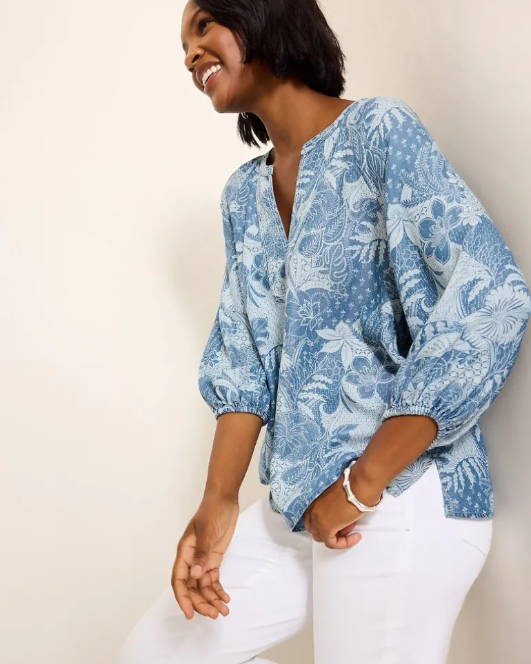 An intricate, sketched print of island flora inspires a unique silhouette that’s perfect for elevating your happy hour attire. Crafted from an ultra-soft fabric, this blouse brings comfort, versatility, and standout style.