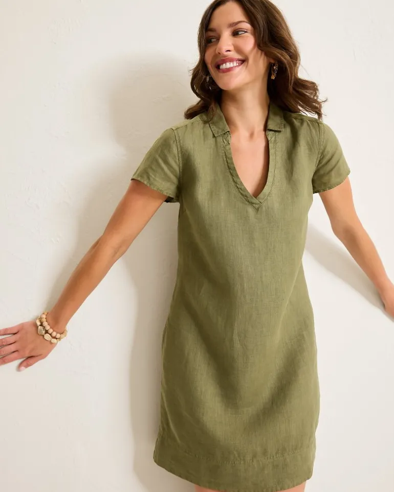 Two Palms Short-Sleeve Linen Collared Dress
