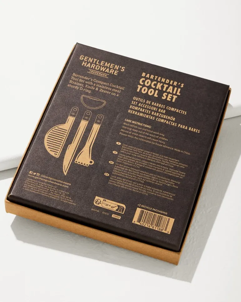 Upgrade your barware collection with our compact bar tool set that carries a zester, strainer, and knife all on one handy carabiner! It also makes a great gift for any experimenting mixologist in your life with its elevated packaging.
