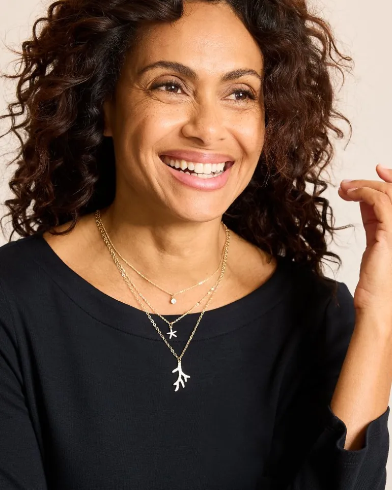 Embellished sea life-inspired charms help you lean into coastal glamor with this dainty layered necklace that makes your accessorizing appear totally effortless.