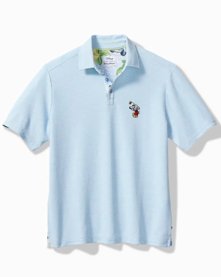 Tee-up and take on the green in a polished yet playful polo, complete with an embroidered decoration of a golf-playing Mickey Mouse. Finished with woven trim and crafted from an ultra-soft Supima cotton blend, this short-sleeve style offers casual comfort in a clean, minimalist look that’s also UPF rated!