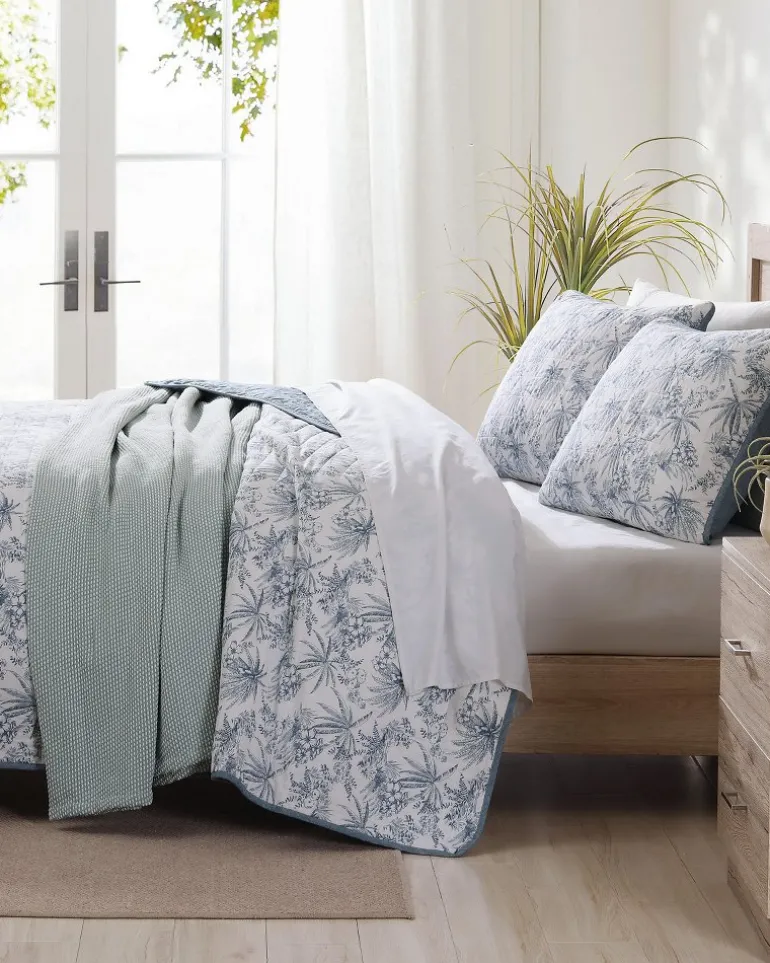Add a breathable, fresh layer to your bedding ensemble with an island-inspired Tommy Bahama quilt set that brings life to your space with its colorful, coastal motifs.