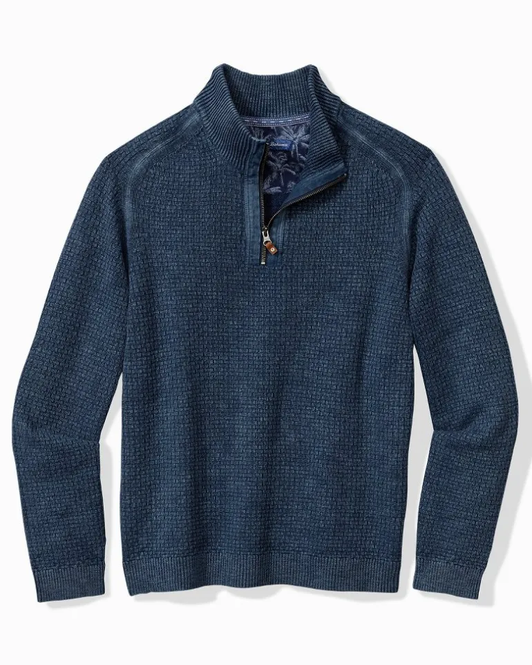 Brisk autumn days call for a versatile layer that elevates your comfort while helping you stay warm. Crafted from 100% cotton, this half-zip sweater is garment dyed with a saltwater wash that creates a casual worn-in look—and effortlessly pairs back to our Indigo Palms™ denim.