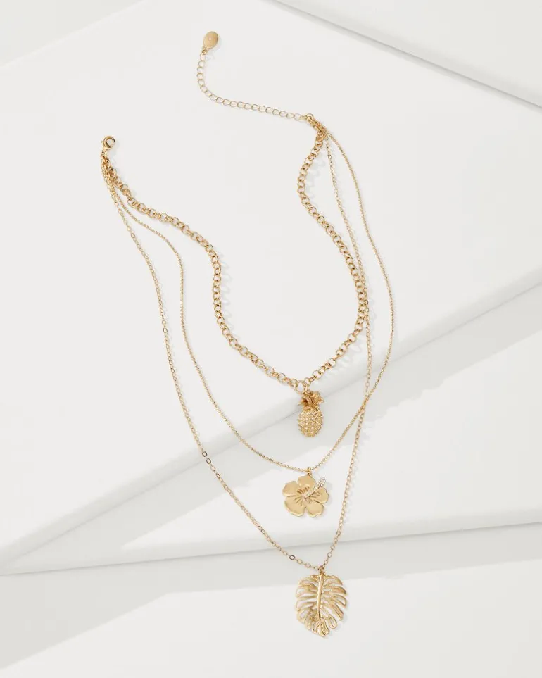 Tropical Blooms Multi-Row Layered Charm Necklace