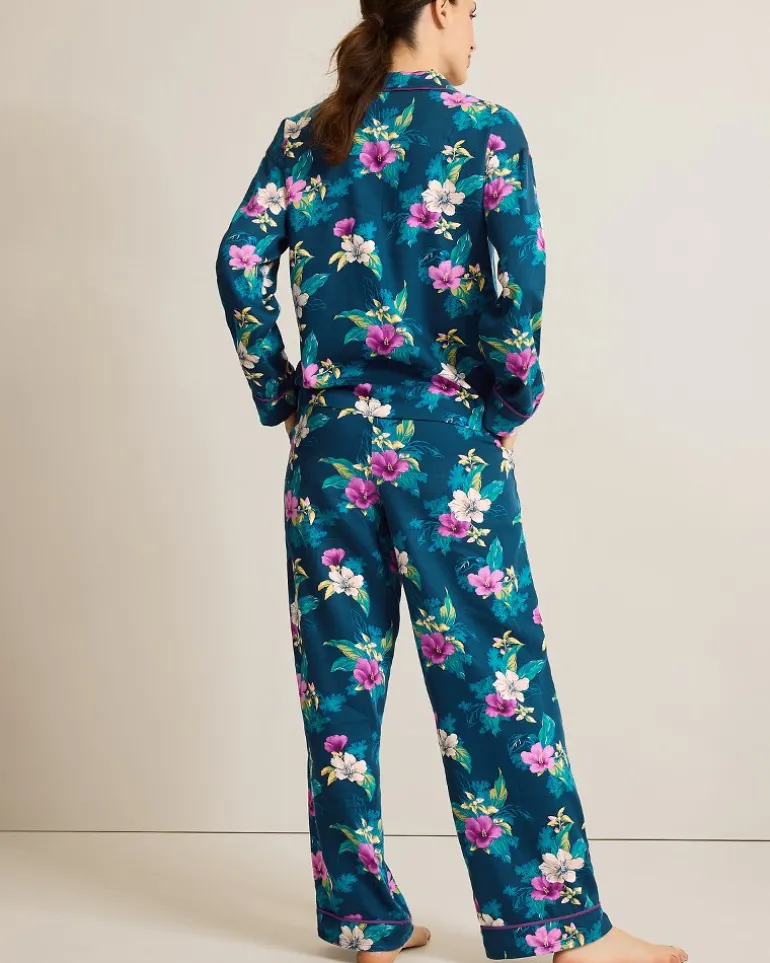 Let your relaxation bloom in this classic two-piece pajama set, woven from a lightweight and breathable cotton blend with a smooth finish.